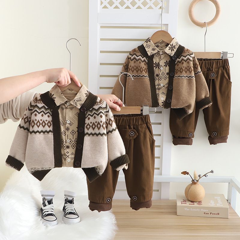Boys' 2025 new British style long sleeved sweater autumn fashion children's knitted sweater jacket three piece set