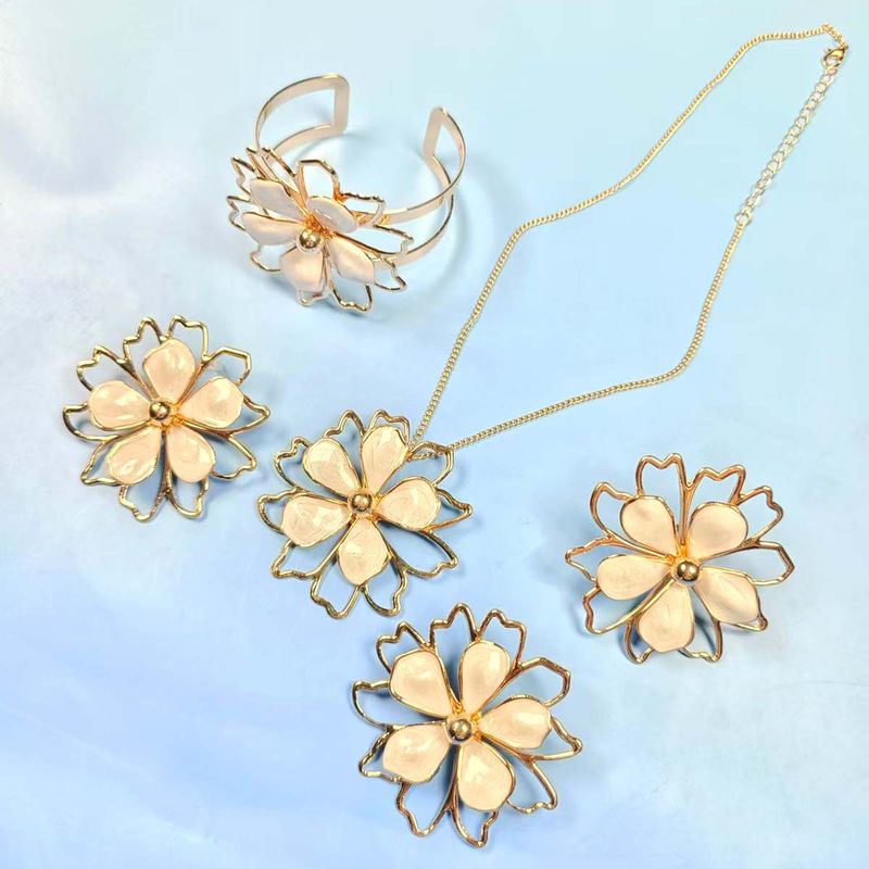 Ensembles de bijoux Collier Ensemble de boucles d'oreilles Ensemble de bracelets et bagues Ensemble de nouveaux ensembles de boucles d'oreilles à deux couches en trois dimensions creuses et lisses en forme de feuille de lotus Ensemble de colliers et bagues_voghion.com