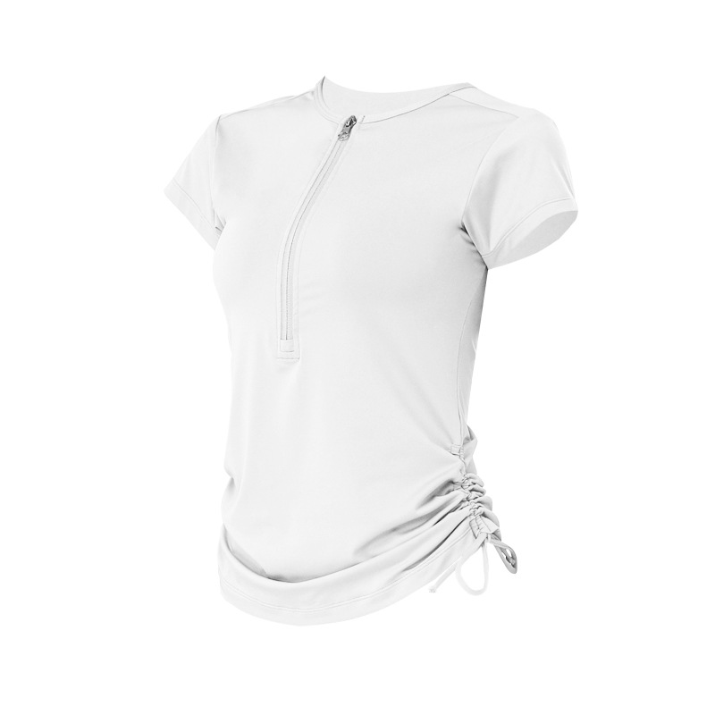 T-shirt à manches courtes à cordon de serrage européen et américain, vêtements de yoga, haut pour femmes, vêtements de fitness, de course à pied, slim et minces