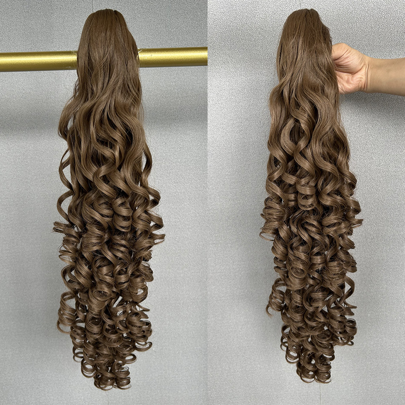 Perruque pour le commerce extérieur, grosse vague, cheveux longs bouclés, boucles princesse, queue de cheval à pince.