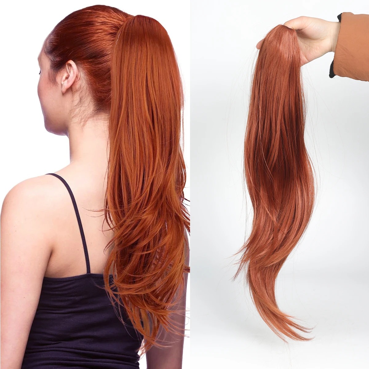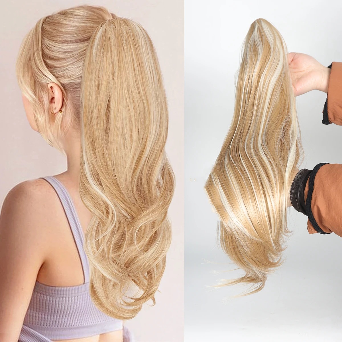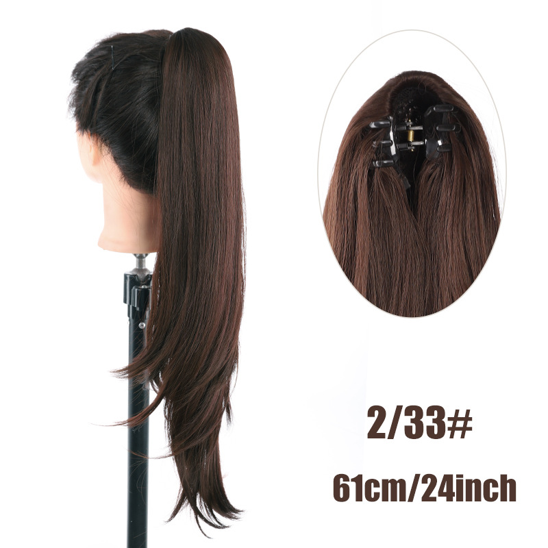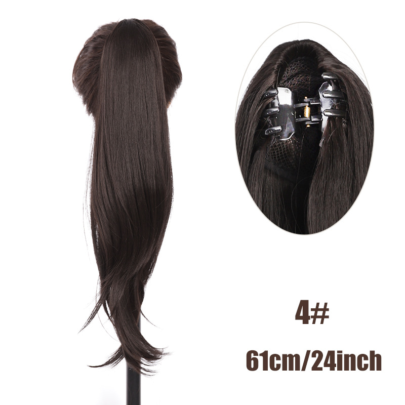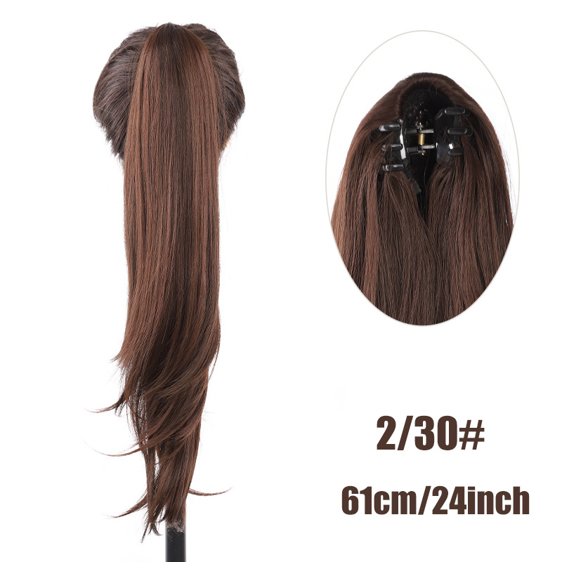 Petite perruque micro-bouclée mi-longue à clip, queue de cheval haute, extensions de cheveux naturels sans couture, augmente le volume des cheveux, 61 cm, 140 g