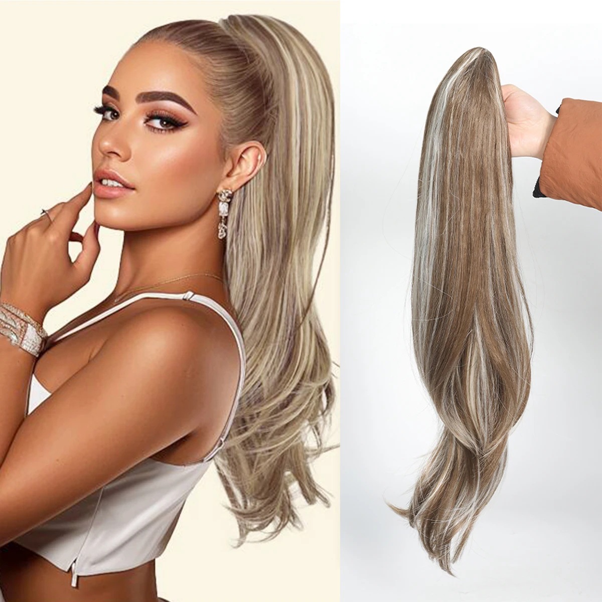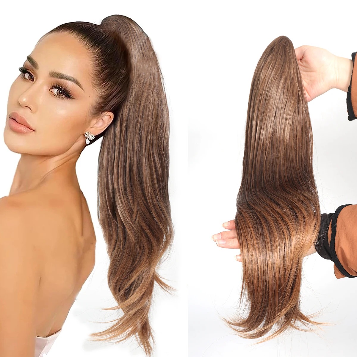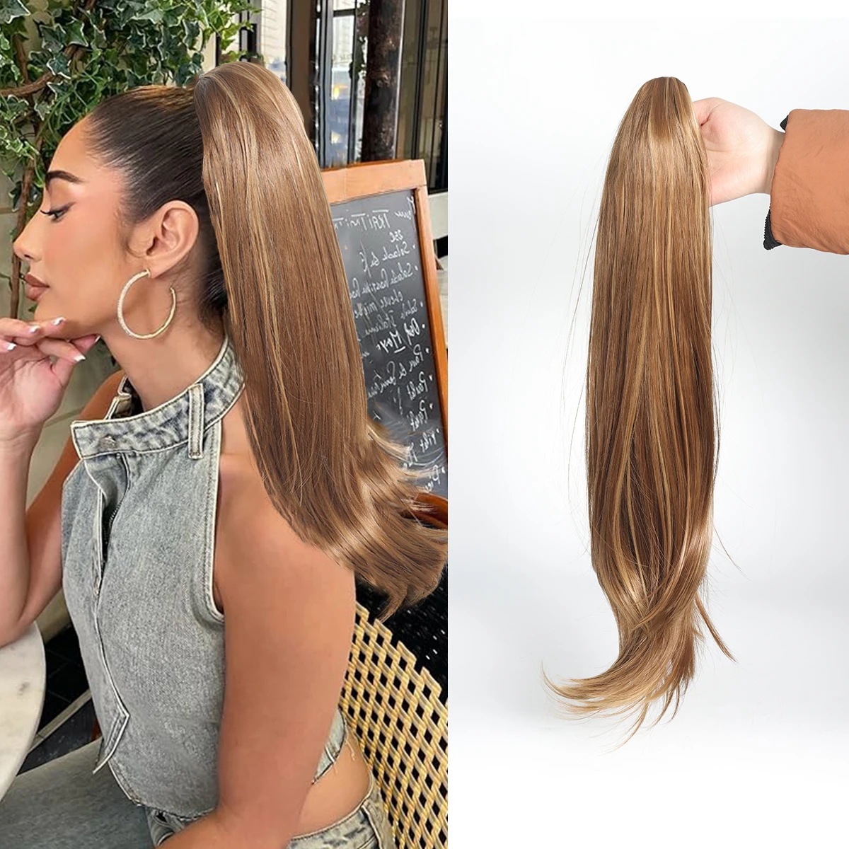 Petite perruque micro-bouclée mi-longue à clip, queue de cheval haute, extensions de cheveux naturels sans couture, augmente le volume des cheveux, 61 cm, 140 g