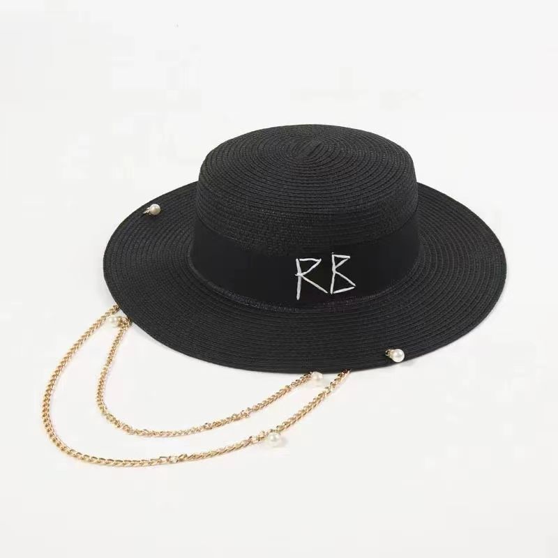 Chapeau Fedora à double chaîne pour femme, chapeau de paille à la mode, nouvelle collection été 2024