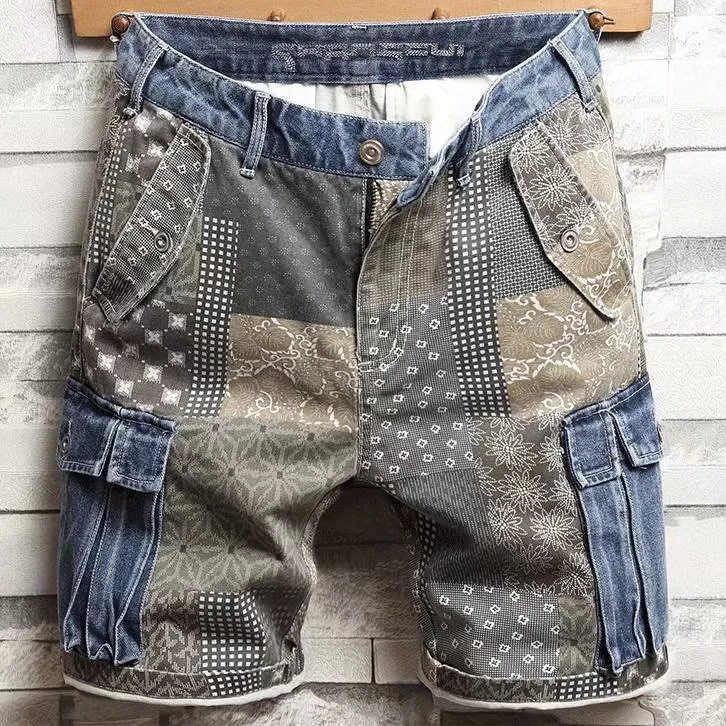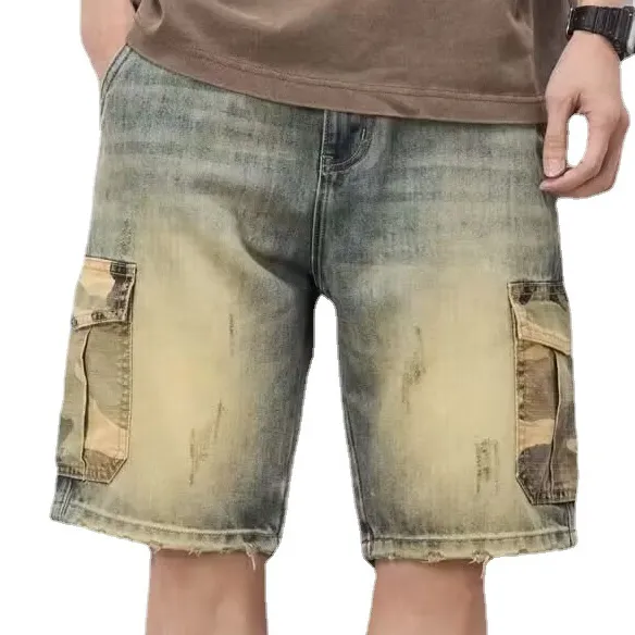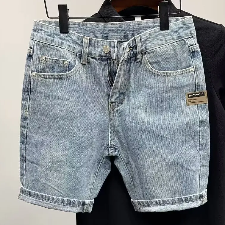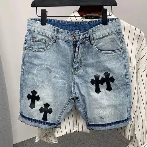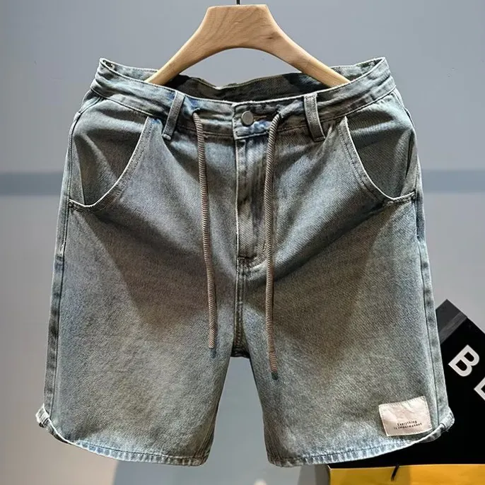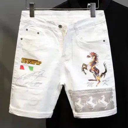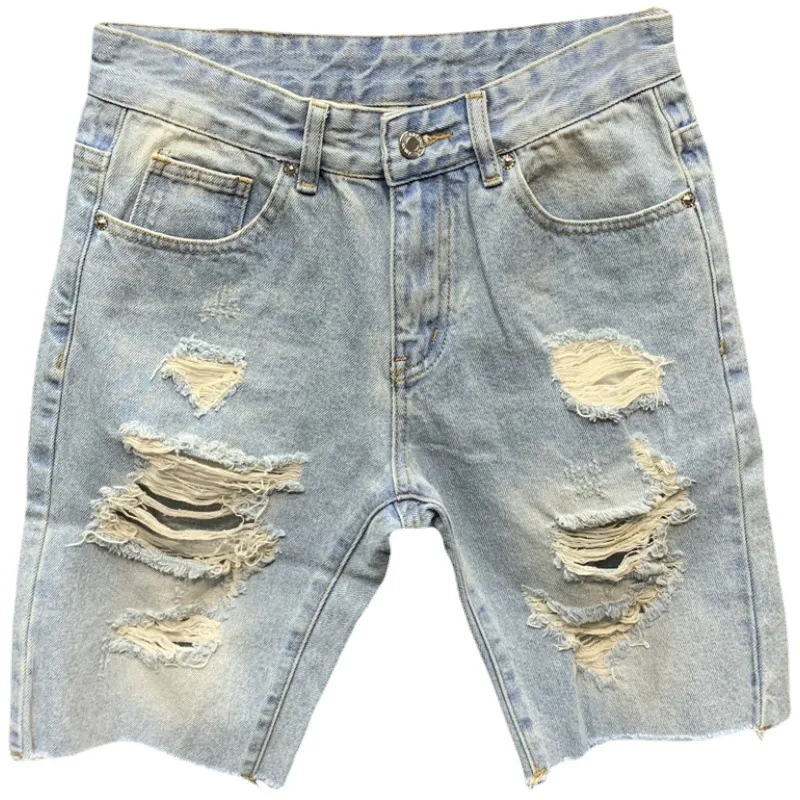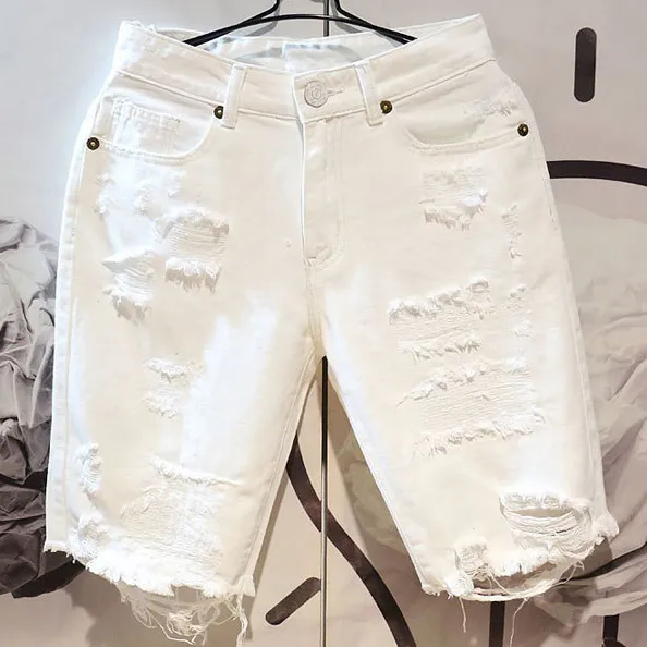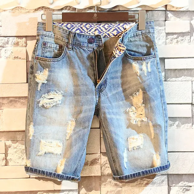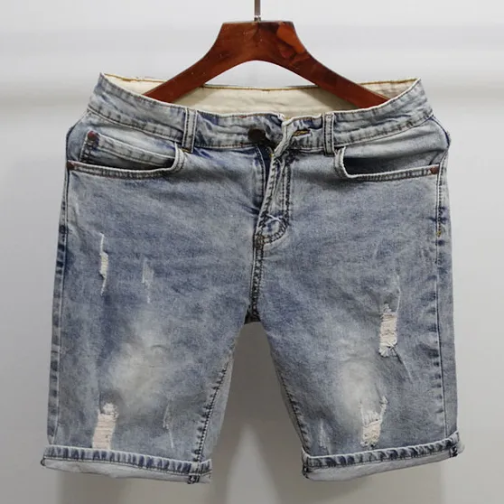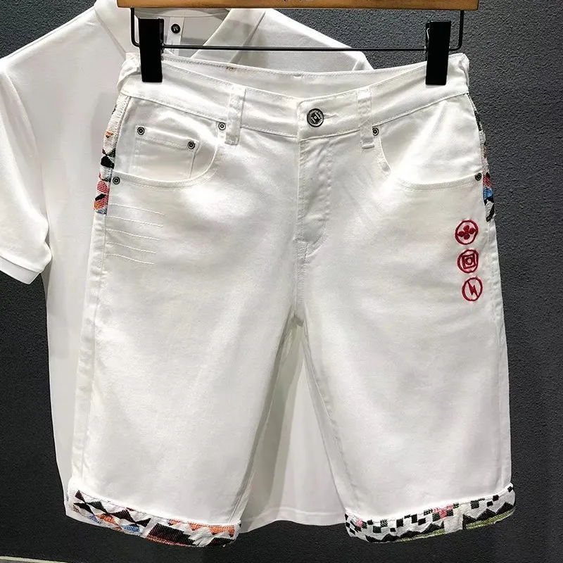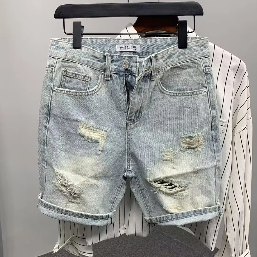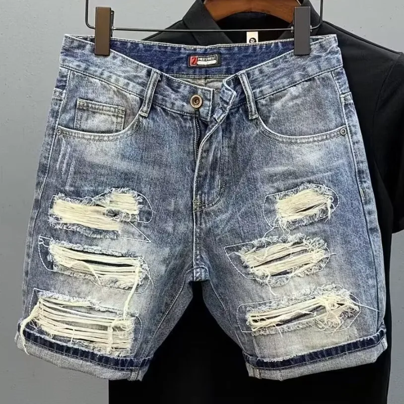 Short tendance pour homme, jeans droits, serrés, décontractés, hip hop, street, pantalon déchiré, patch, lettre imprimée, denim