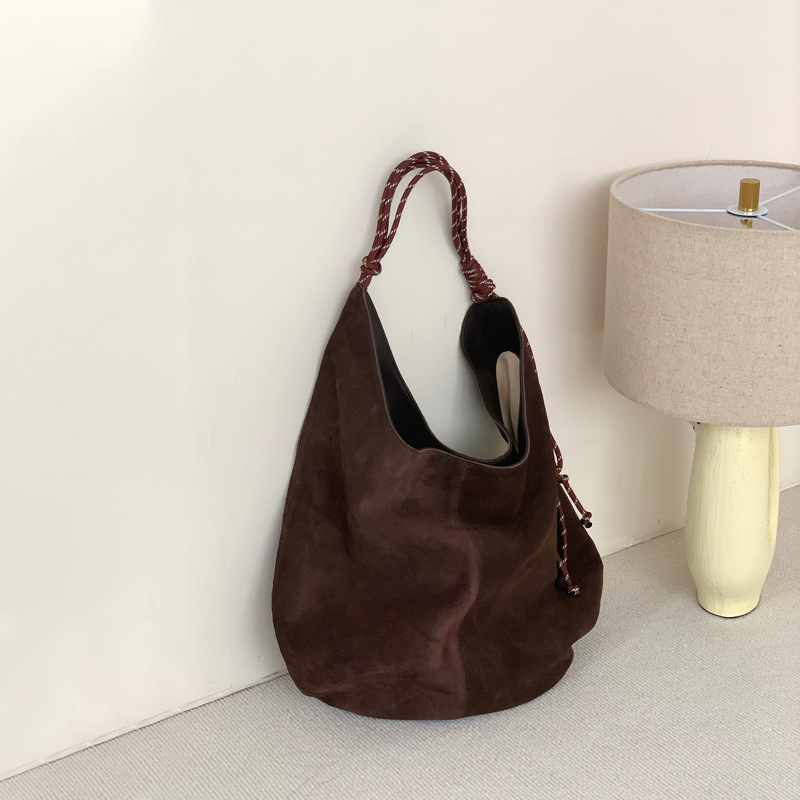 Fashion woven rope large capacity women's bag 2024 new lazy style tote bag leather frosted single shoulder large bag armpit bag