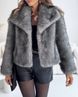 Manteau à col en fausse fourrure – Veste courte à revers surdimensionnée pour femme (polyester, S-XL, imprimé beige/gris/léopard, style bureau chic d'inspiration britannique)