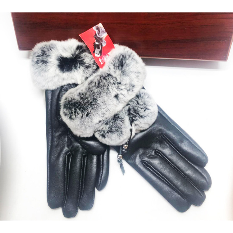 Femmes Hiver Véritable Cuir Écran Tactile Rex Fourrure De Lapin Bouche Corde Suspendue Style Coréen Équitation Extérieur Chaud Peau De Mouton