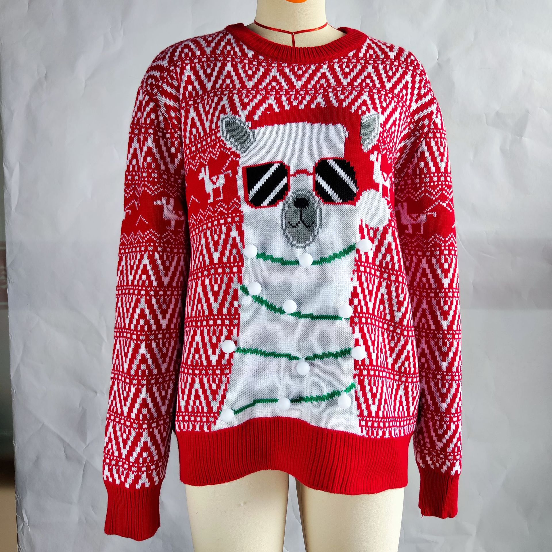 Pull festif en maille alpaga – Pull ras du cou confortable avec broderie 3D (motif animal de Noël, acrylique épais, tailles S/M/L/XL, idéal pour les fêtes et le quotidien)