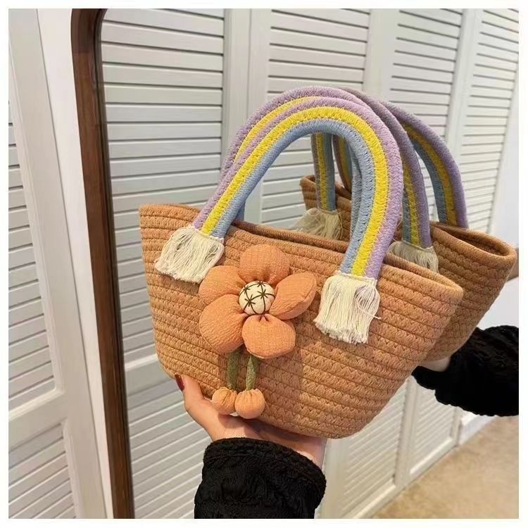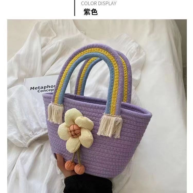 Petit sac à main tissé en corde de coton arc-en-ciel, cadeau de mariage, sac pour femmes, polyvalent, sac à main de Style occidental