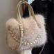 Sac à main duveteux tendance 2025, petit carré, mignon, en peluche perle, bandoulière pour femme.