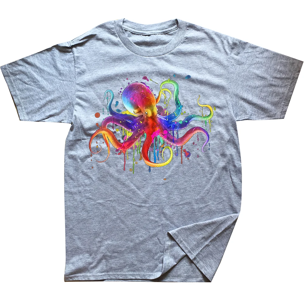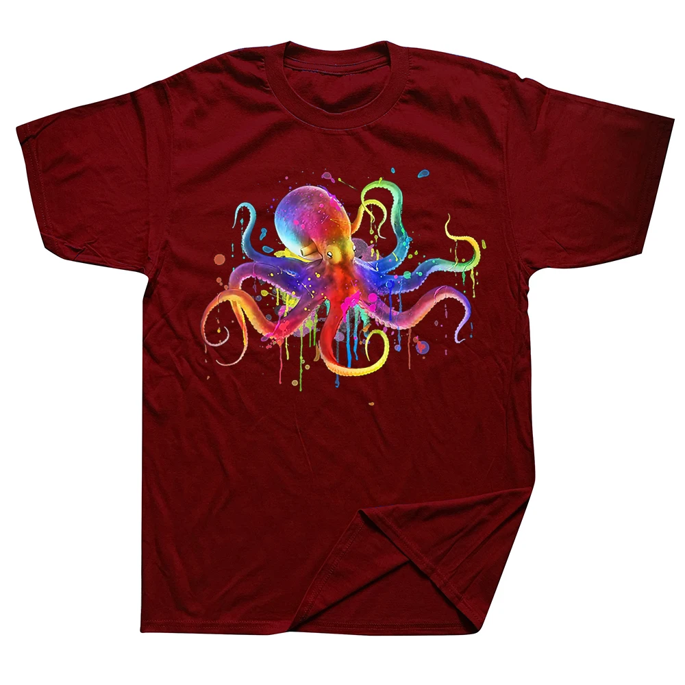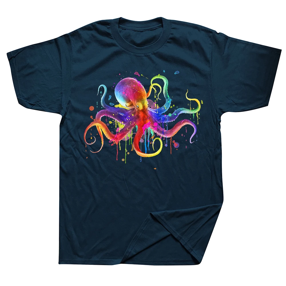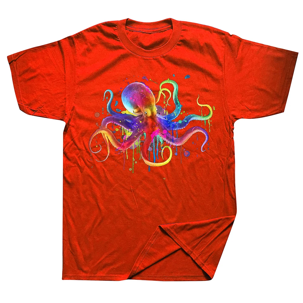 Drôle arc-en-ciel psychédélique coloré poulpe T-shirts hauts col rond mode t-shirt vêtements décontracté basique T-shirts