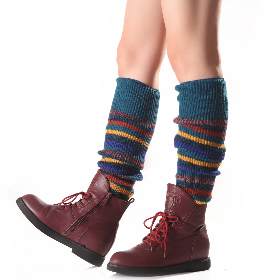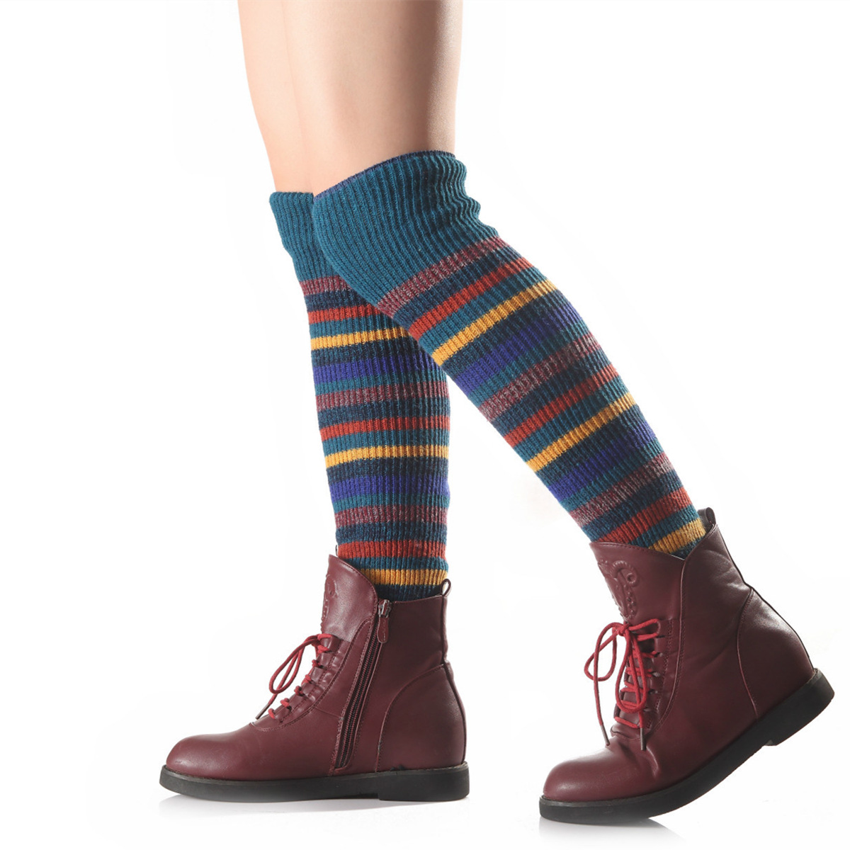 Genouillères pour femmes, nouvelles housses de chaussettes tricotées à rayures horizontales d'automne et d'hiver avec de la laine pour plus de chaleur.