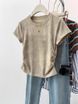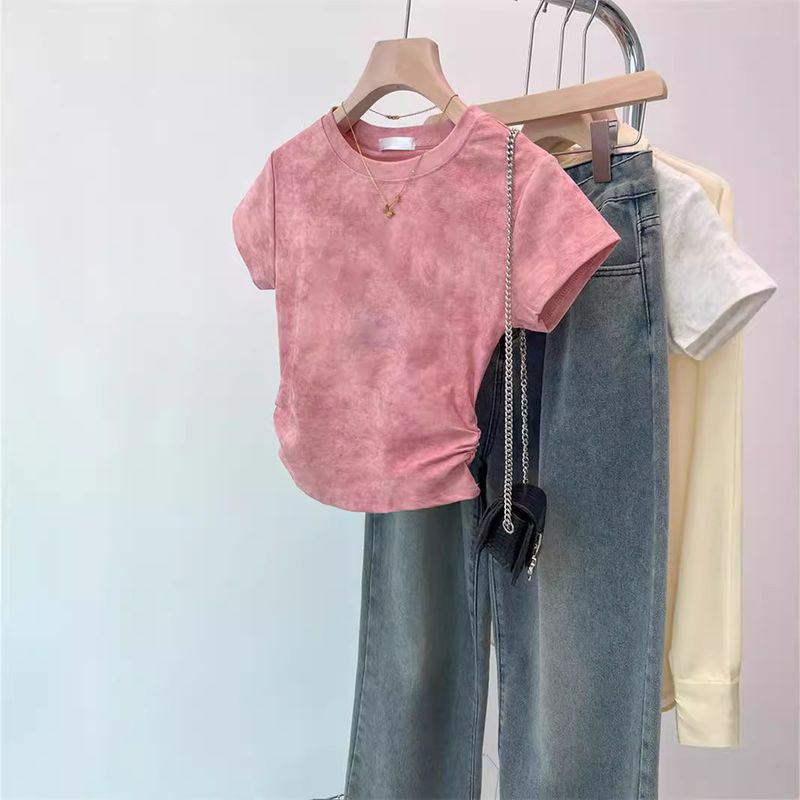 T-shirt court en coton tie-dye uni, style coréen, coupe ajustée, couleur unie froissée, pour femme, collection commerce extérieur.