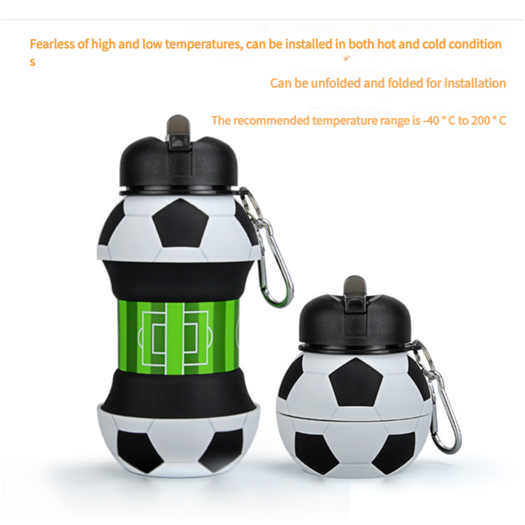 Outdoor Sports Water Bottle Ball-Shaped Silicone Folding Cup Portable Soccer Ball Anti-Drop Leak-Proof Outdoor Sports Water Bottle