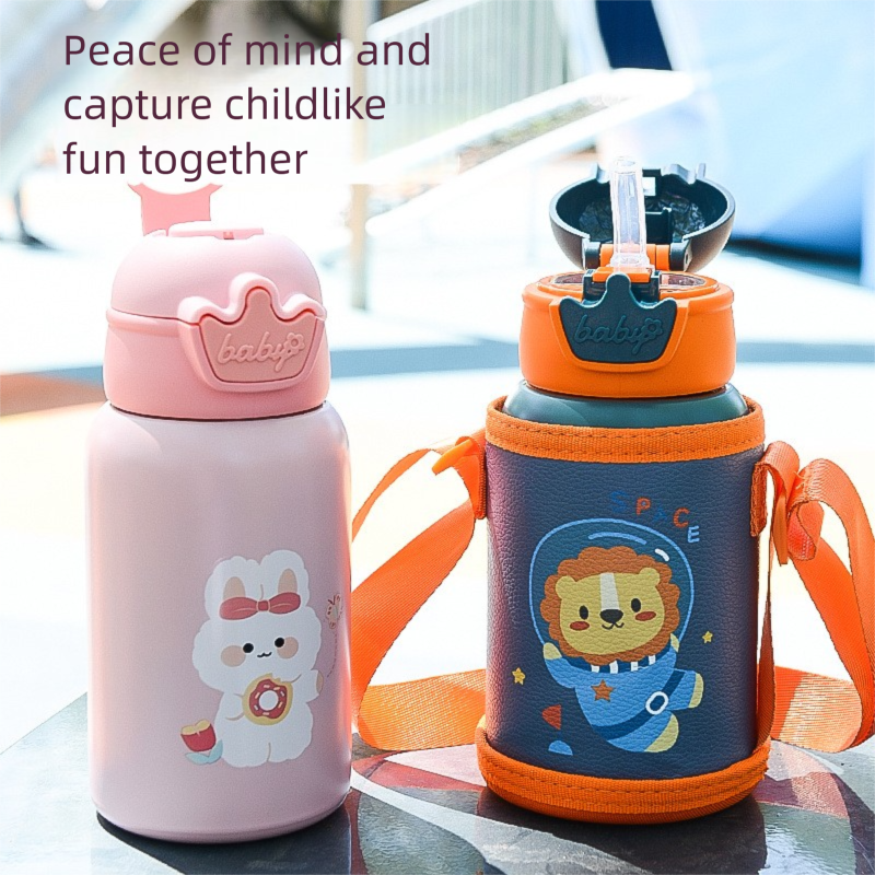 Children's Cartoon Water Bottle Cute High-Value Leather Case Handheld Insulated Cup Portable Outdoor Shockproof Baby Cup