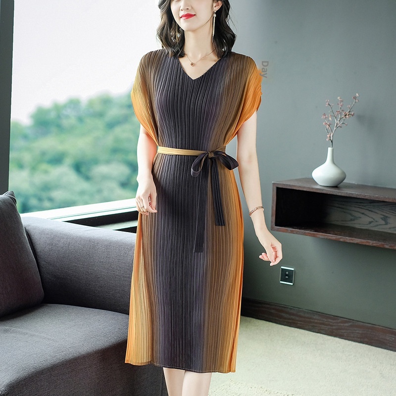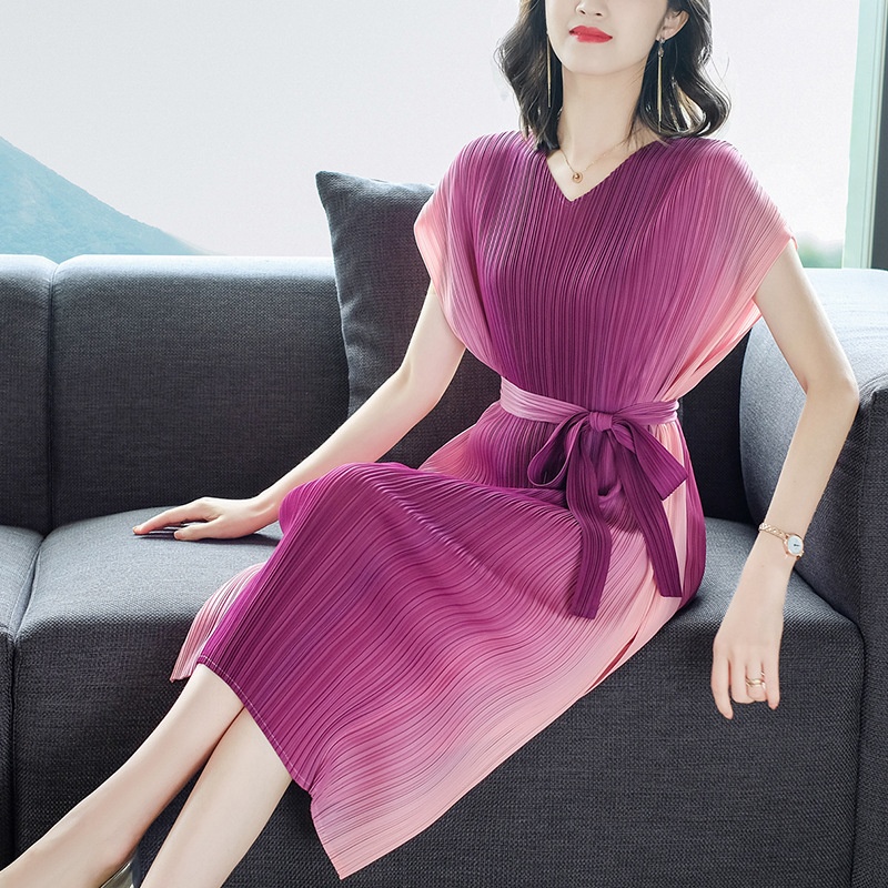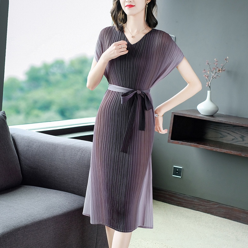 Robe plissée été 2024 GraceChic pour femmes grandes tailles : élégante et tendance, elle affine la taille et dissimule le ventre.