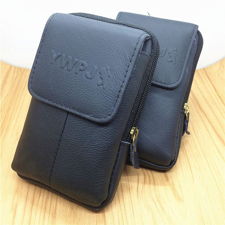 Grand sac banane vertical noir tendance, multifonctionnel, double fermeture éclair, en cuir véritable, décontracté, pour téléphone, sport en plein air