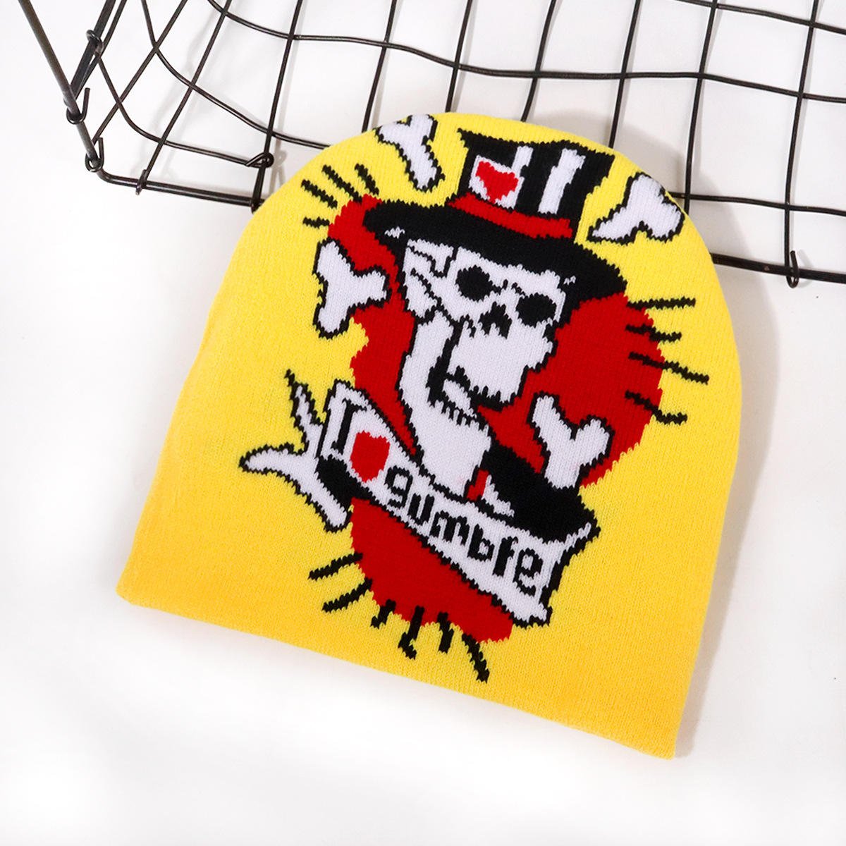 Chapeau de crâne de lettre d'Halloween, chapeau en tricot acrylique, chapeau chaud d'automne/hiver