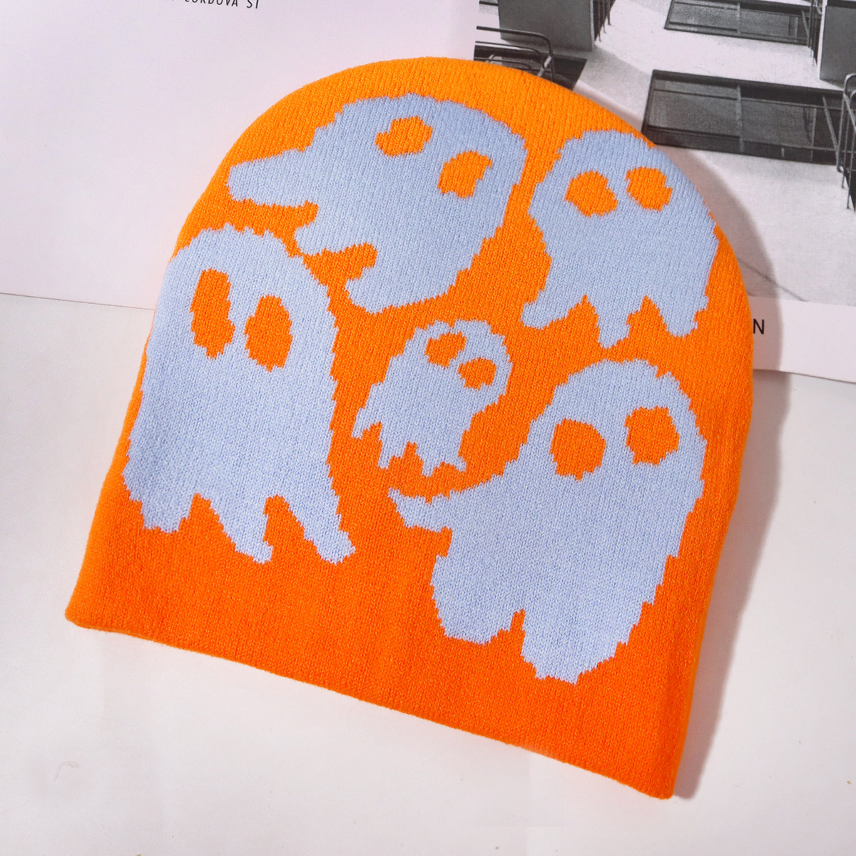 Chapeau tricoté jacquard tendance pour fête d'Halloween, chapeau en laine chaud pour protection des oreilles de la rue