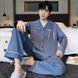 Pyjama pour homme, styles printemps et automne, vêtements de maison à manches longues tout en pur coton, été 2023, nouvel ensemble fin pour