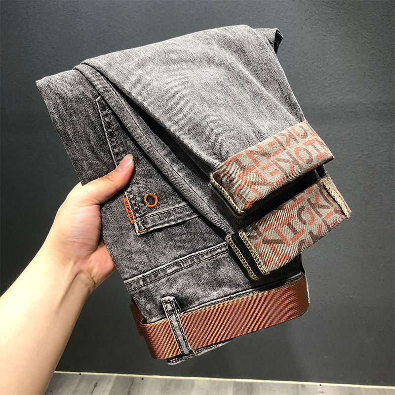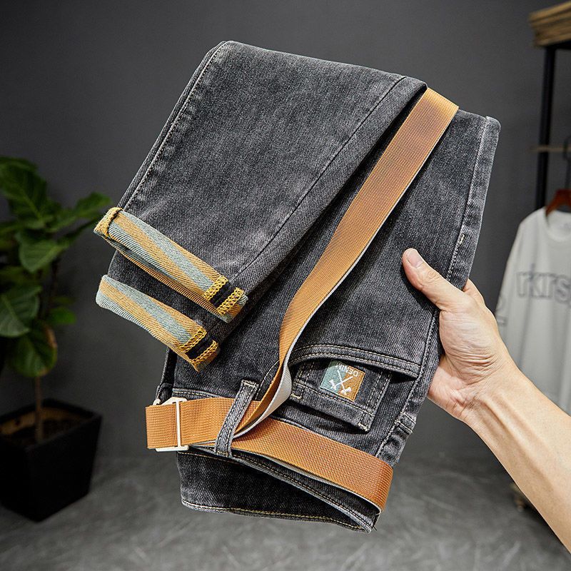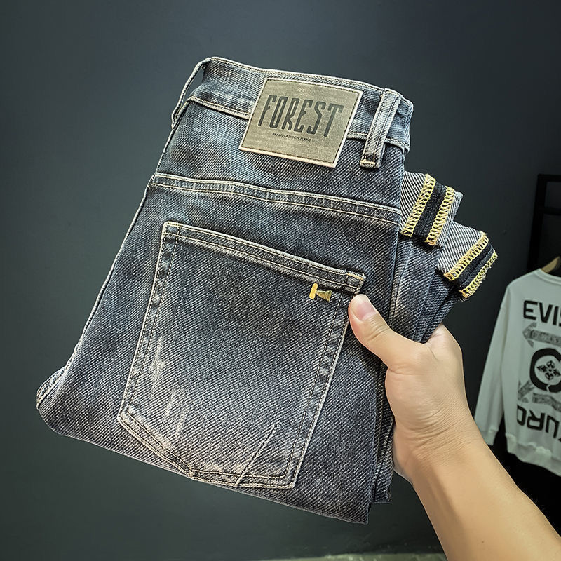 High quality cropped jeans for men's new autumn trend elastic trend loose and versatile casual pants for men