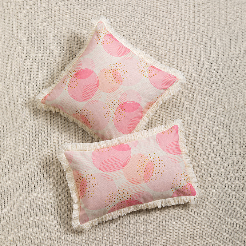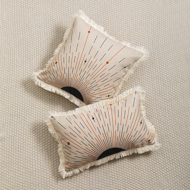 Housse de coussin décorative en coton et lin de style européen et américain avec pompon pour canapé, modèle de décoration pour la maison