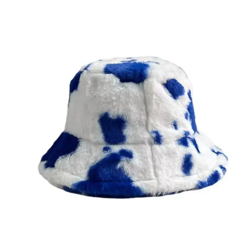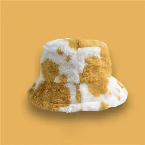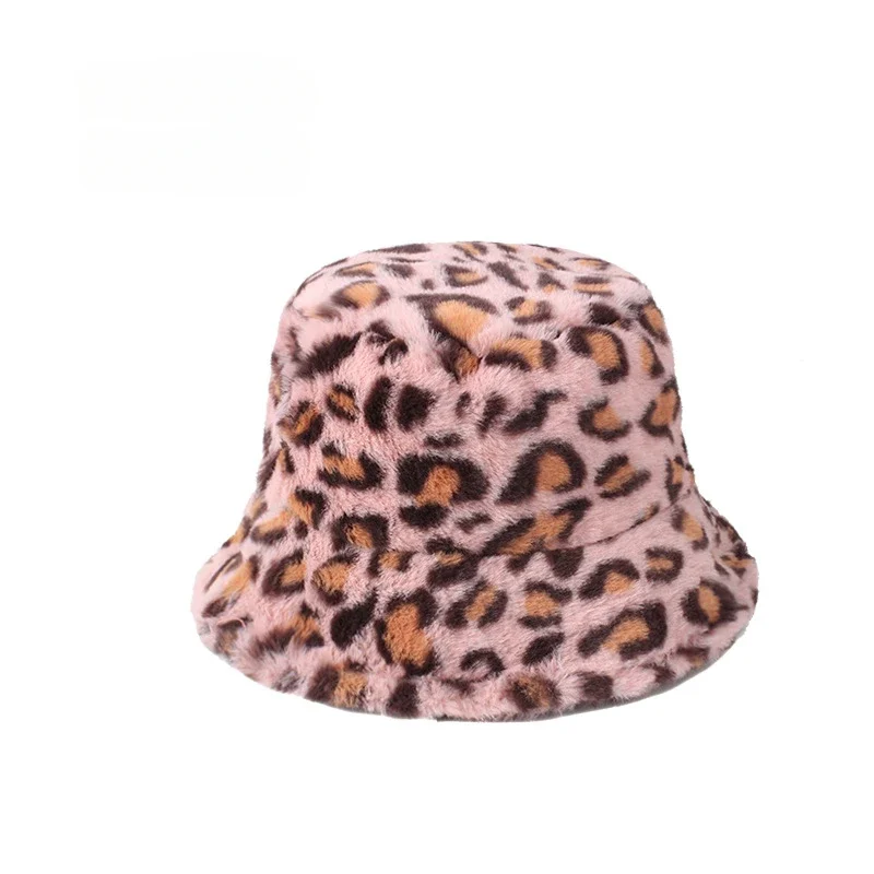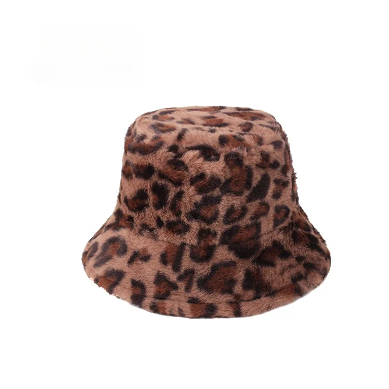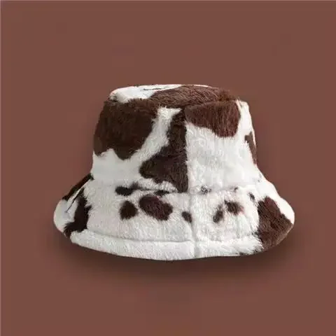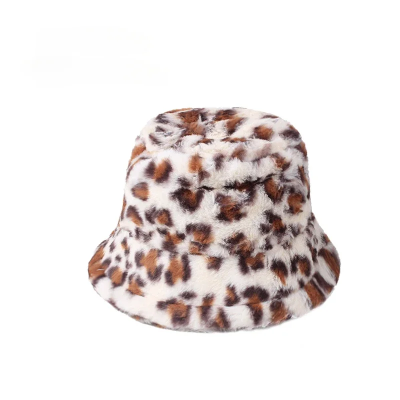 1. Item: INS Autumn and Winter Leopard Print Pattern Fisherman Hat Women's Fleece Thick Cow Print Pot Hat Fashion Versatile Bowler Caps