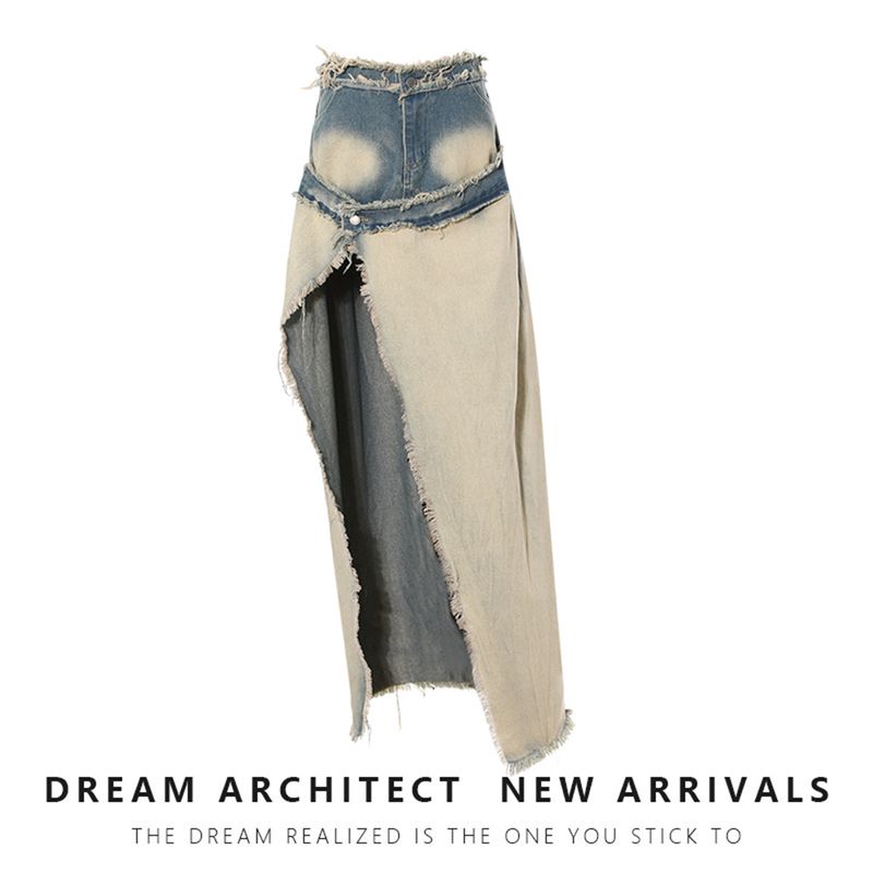 Jupe longue deux pièces en denim délavé et dégradé, style Verve Wasteland, nouvelle collection printemps-été