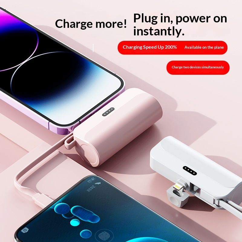 Batterie externe KC Cross-Border Mini Capsule 5000 mAh, compacte et portable, avec câble intégré et personnalisable