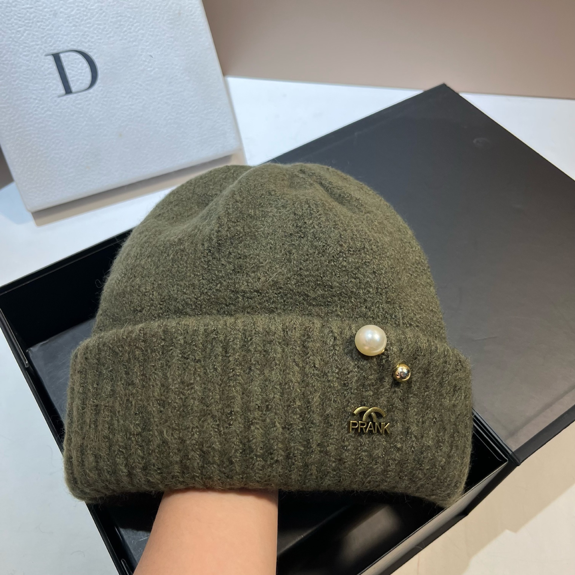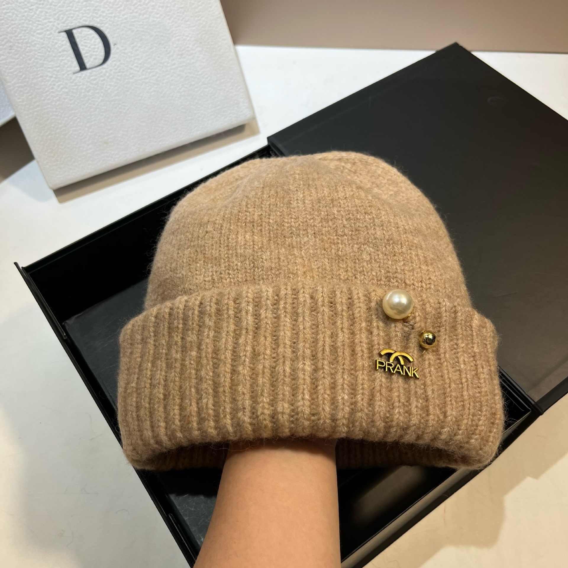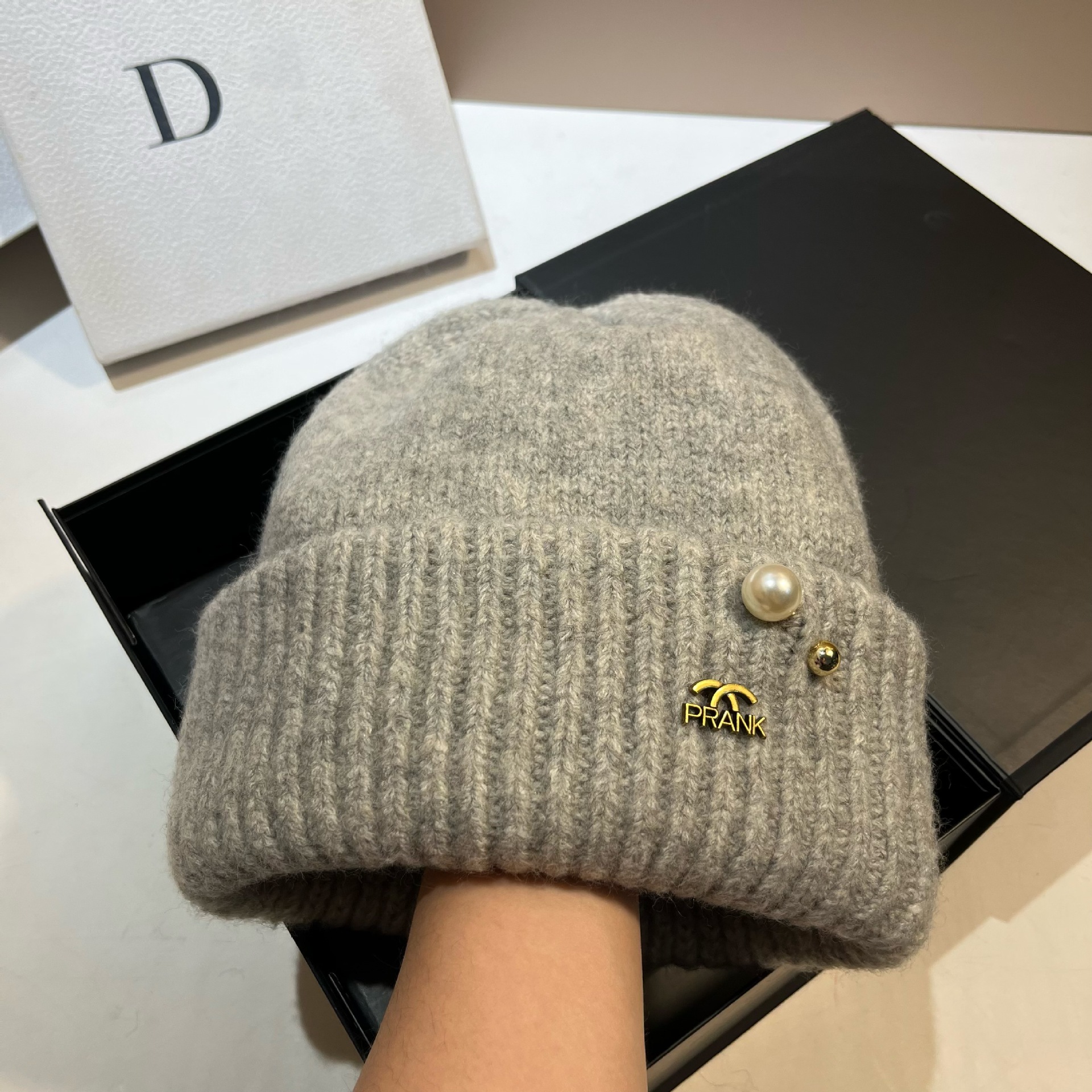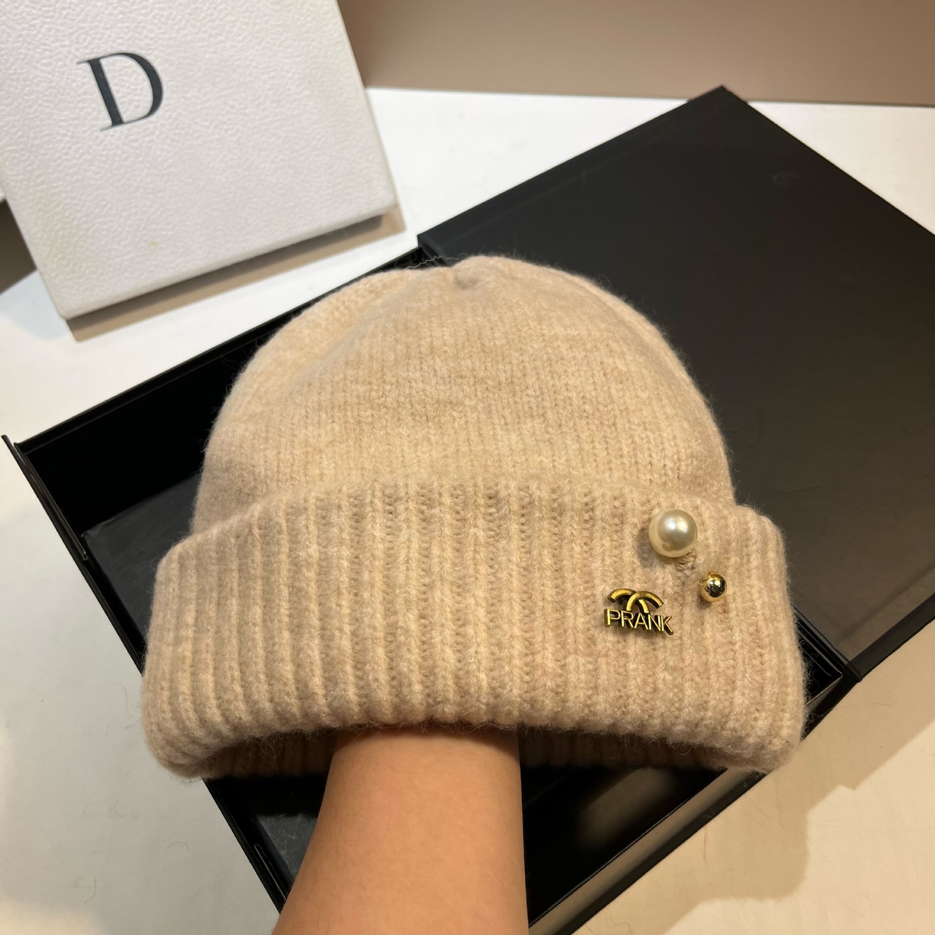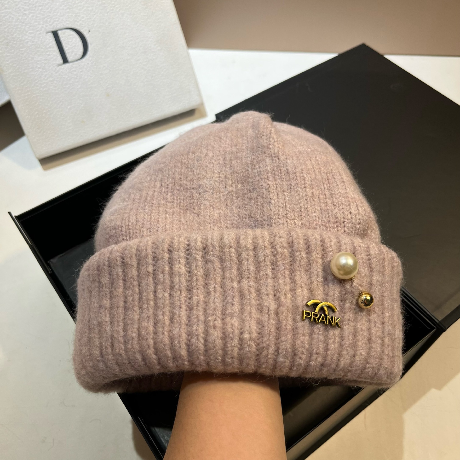 Korean version of new Xiaoxiangfeng pearl wool hat, winter warm wool blend knitted hat, fashionable and sweet toe cap