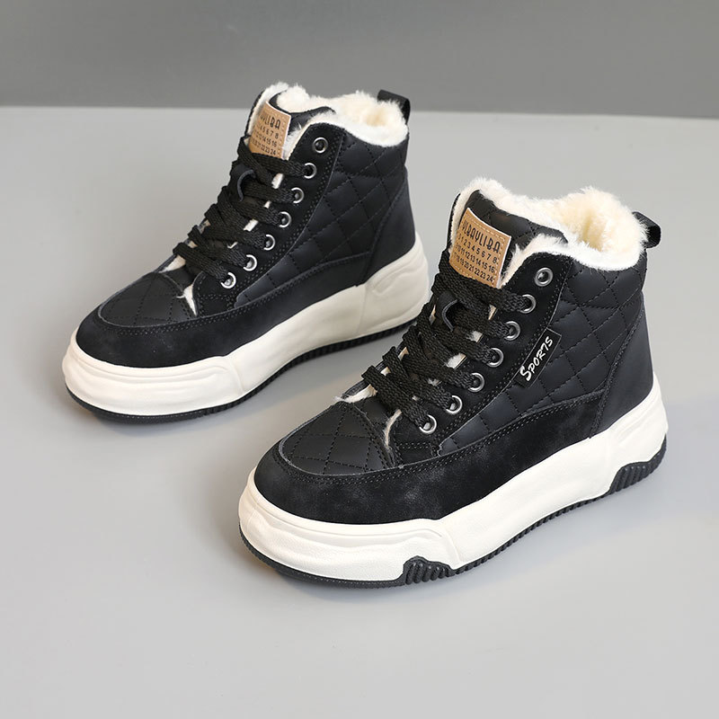 KT2510 new 2024 autumn and winter Korean version with plush women's color blocked mid top snow boots, height increasing cotton shoes for warmth and casual wear