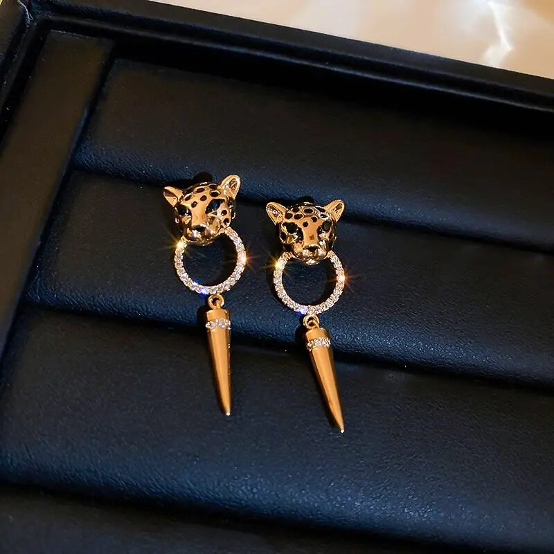 Léopard pour femme haut de gamme personnalisé tendance hip-hop. Les boucles d'oreilles en or sont légères et luxueuses, avec un