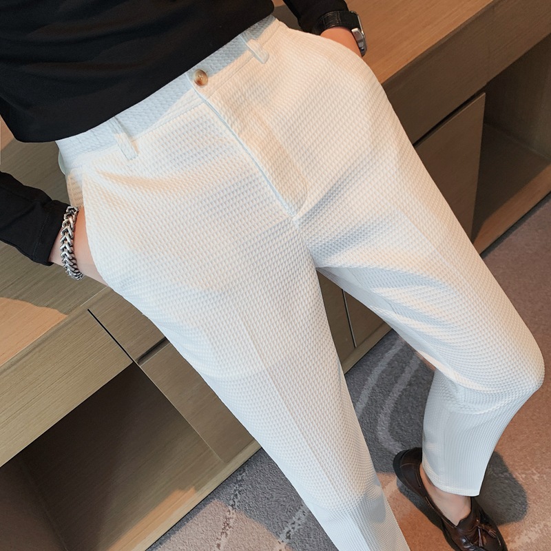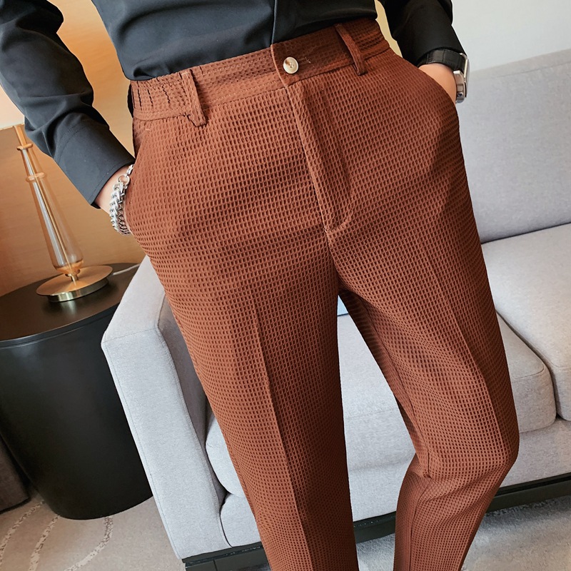 Lazy trendy brand fashionable and simple Waffle straight leg casual pants, slim fit small leg trousers, hanging business suit pants