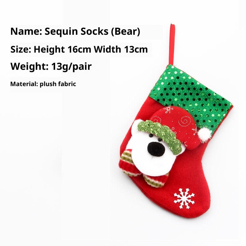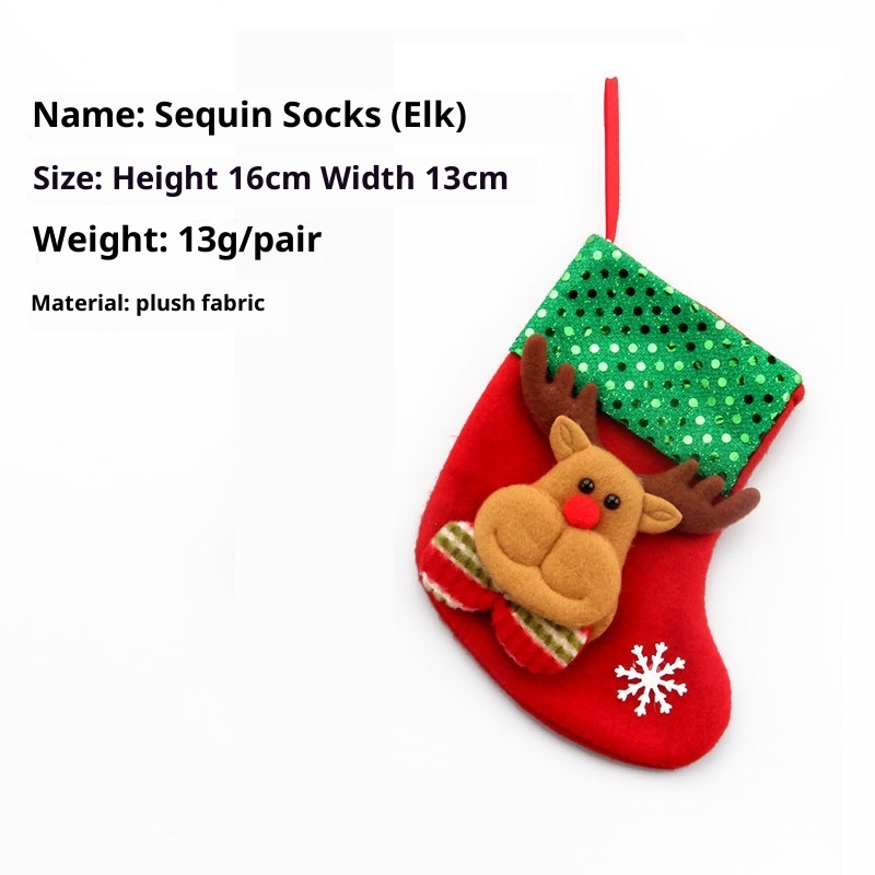 4 small Christmas socks: height 16cm, base width 12cm, sock opening about 10cm