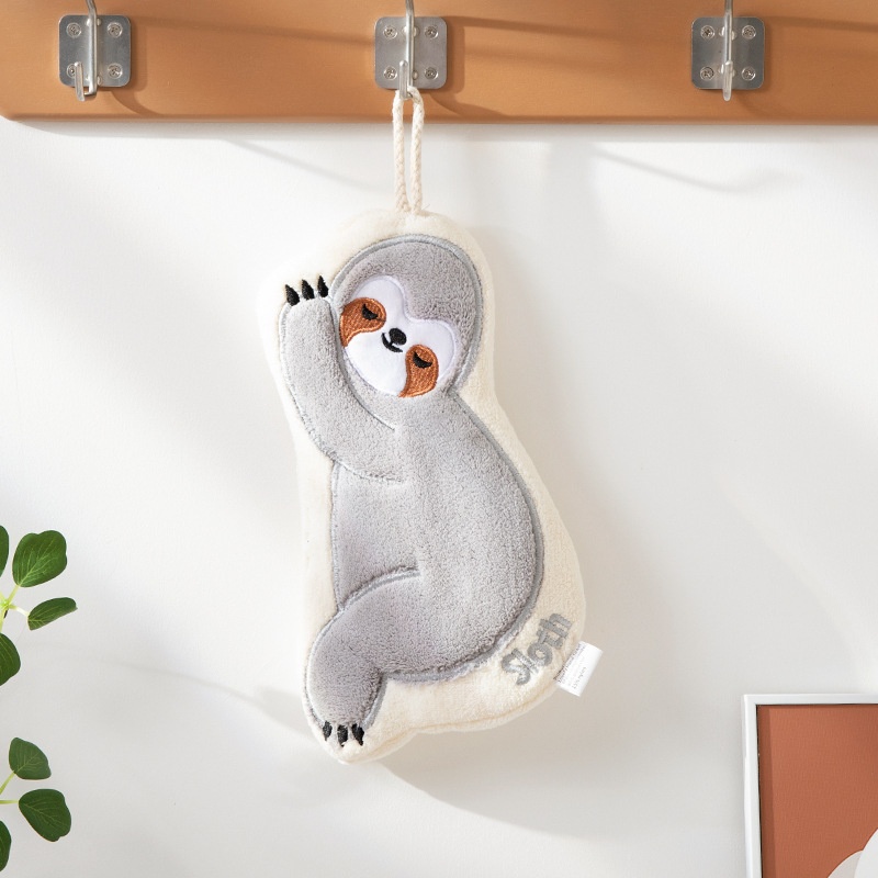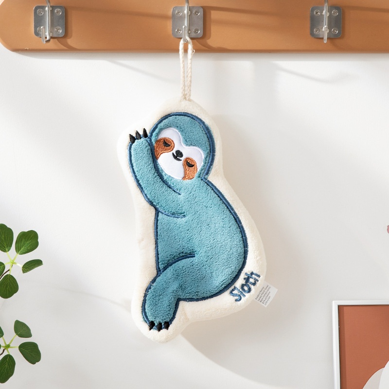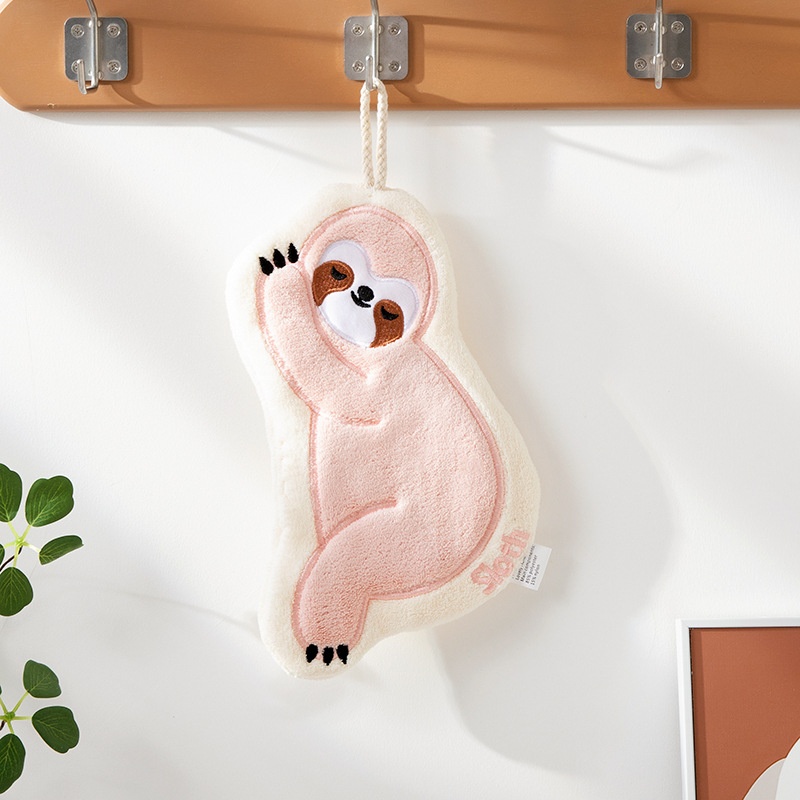 Serviette de cuisine absorbante en polaire corail brodée Lillian Sloth, mouchoir épais avec trou de suspension pour le séchage