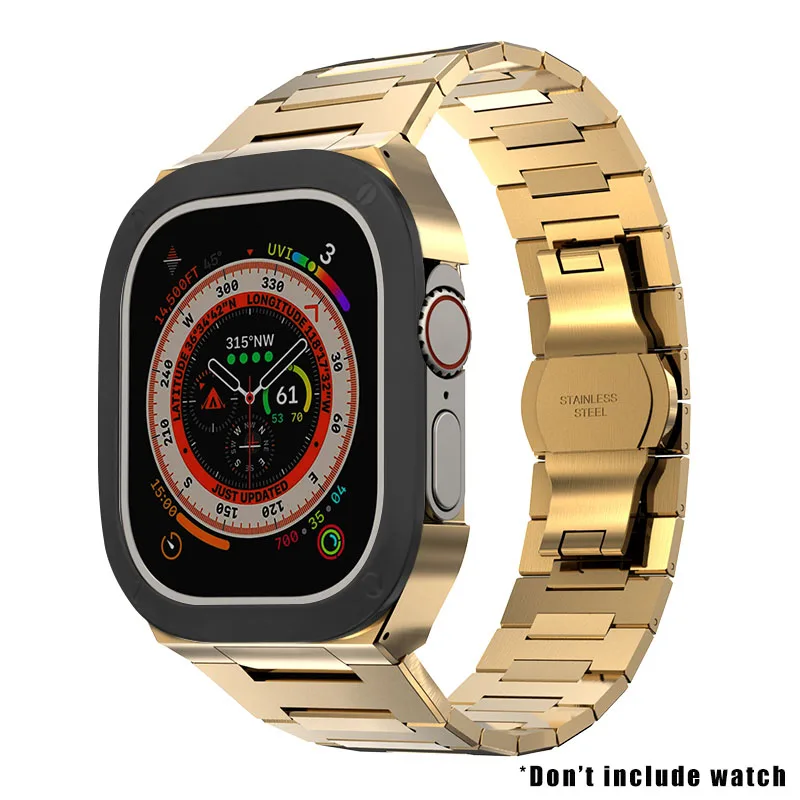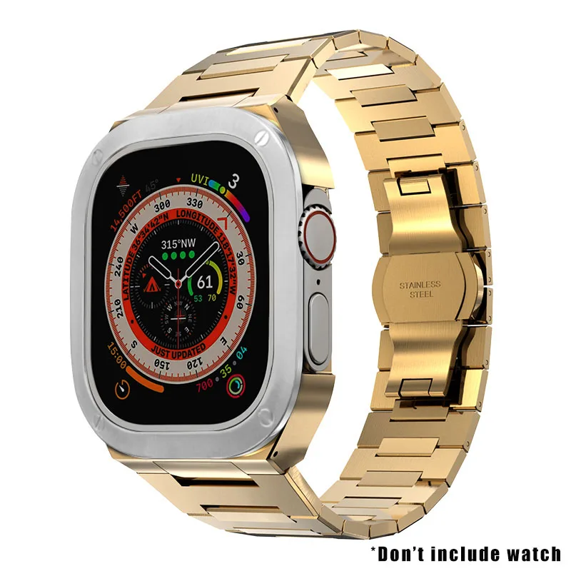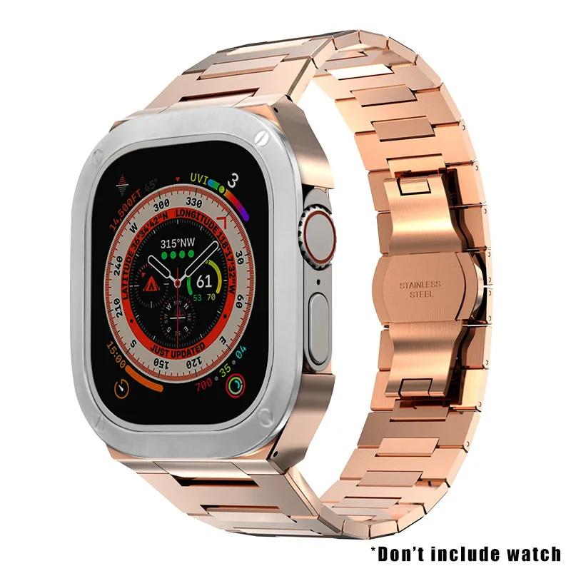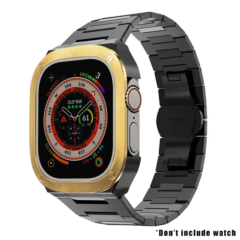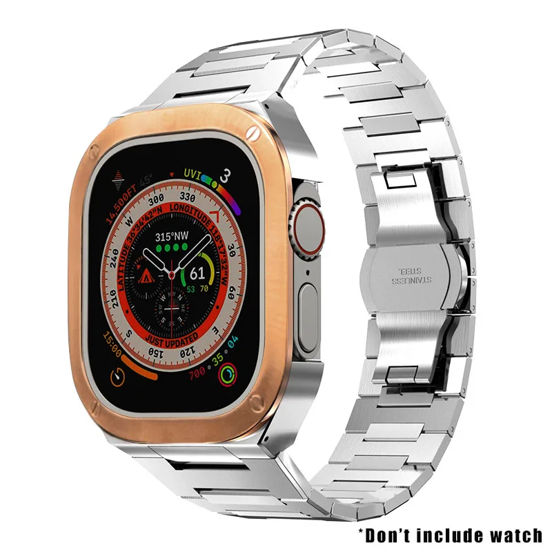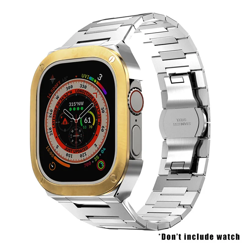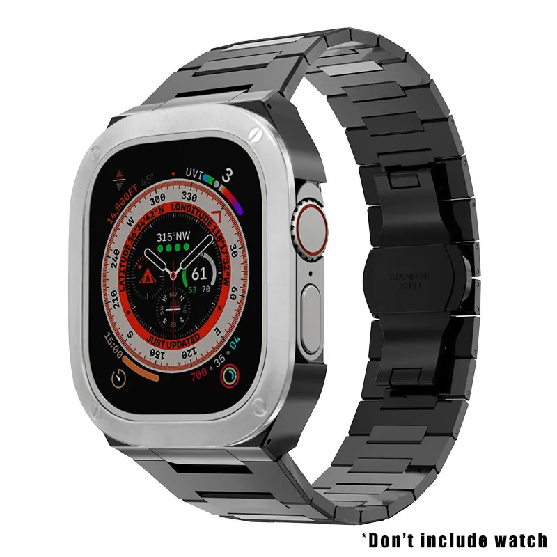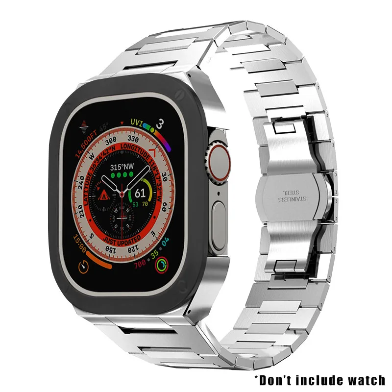 Kit de modification en métal de luxe pour Apple Watch Ultra 49MM Couverture de boîtier en acier inoxydable pour IWatch 49MM Bande de bracelet en caoutchouc Refit MOD