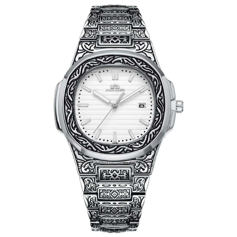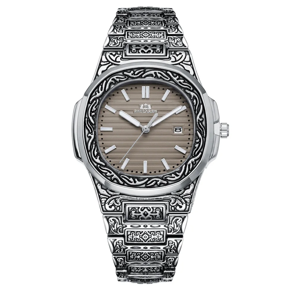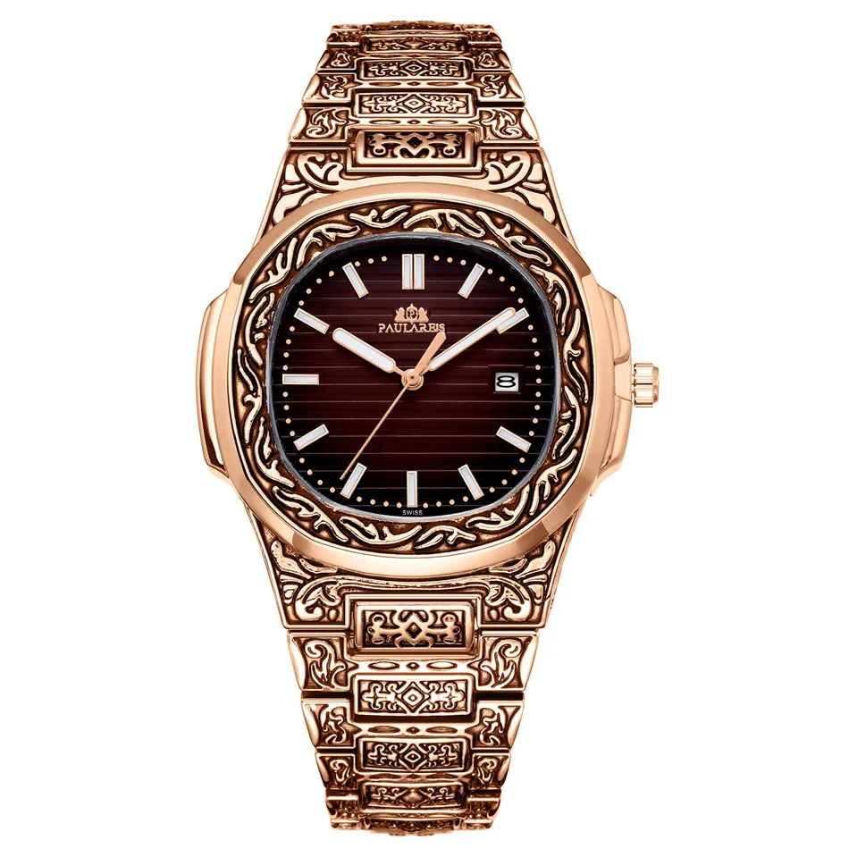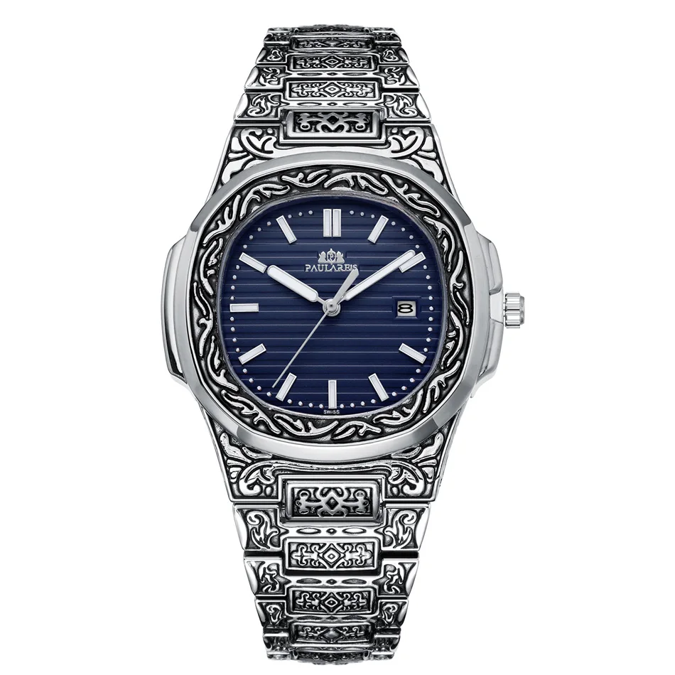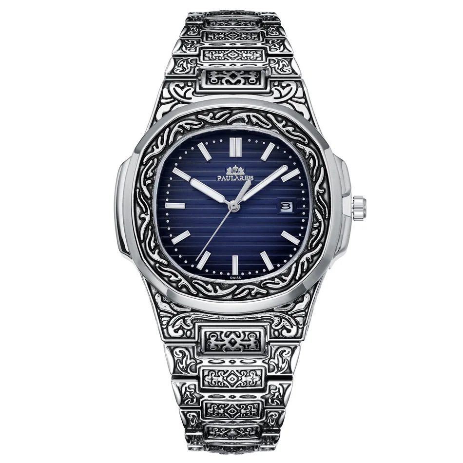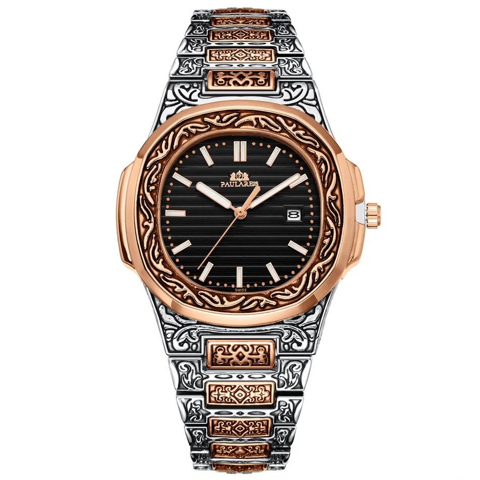 Luxe sculpté Antique Vintage lumineux or Rose jaune or argent dégradé bleu gris café Quartz hommes