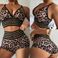 Maillot de bain deux pièces sexy taille haute à imprimé léopard pour femme