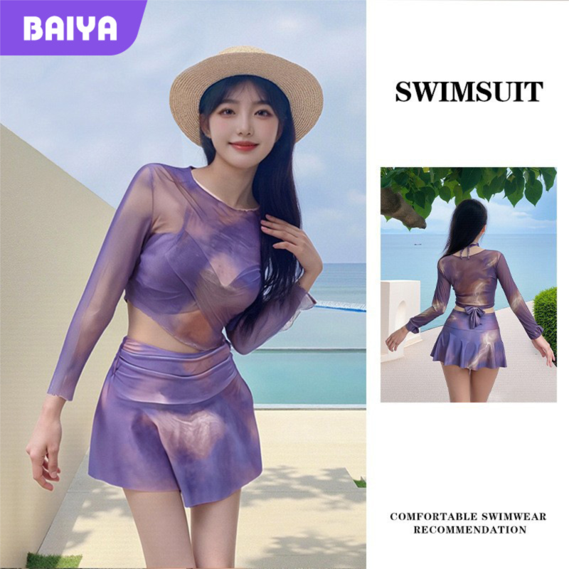 2025 New Swimsuit Women's Three-Piece Set Sexy Purple Mesh Bikini Hot Spring Vacation Swimwear