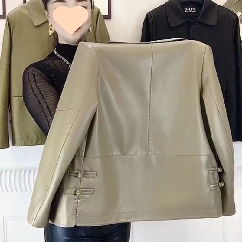 2025 Spring New Women's Short Leather Jacket New Chinese Style Loose Fashionable Casual Spring Autumn Coat Leather Jacket