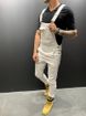 Pantalon à bretelles en denim tie-dye pour homme, coupe ajustée, jean de couleur unie