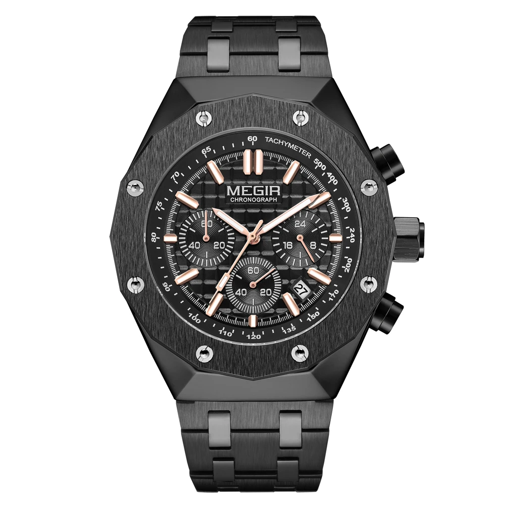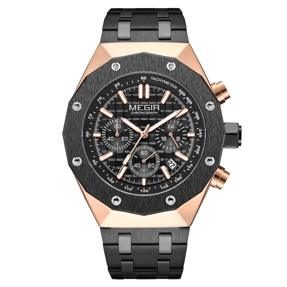 Montre-bracelet à quartz chronographe de luxe pour homme, marque MEGIR, boîtier polygonal, mode décontractée, affaires, cadeau masculin, avec date automatique