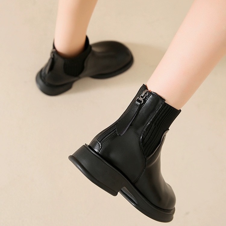 British style thick soled sock boots with back zipper Martin boots for women's autumn and winter 2023 new foreign style Chelsea short boots