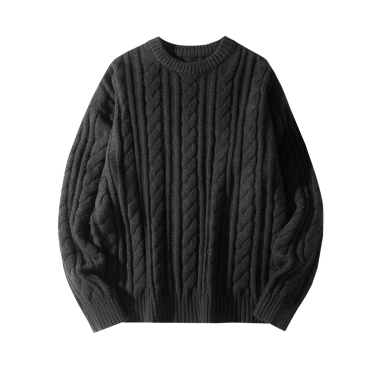 Pull en maille torsadée pour homme - Pull col rond d'inspiration streetwear pour l'automne et l'hiver (noir, beige, marron, gris)
