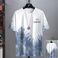 Ensemble de sport décontracté pour homme, short à manches courtes en soie glacée fine, imprimé dessin animé, vêtements tendance pour hommes