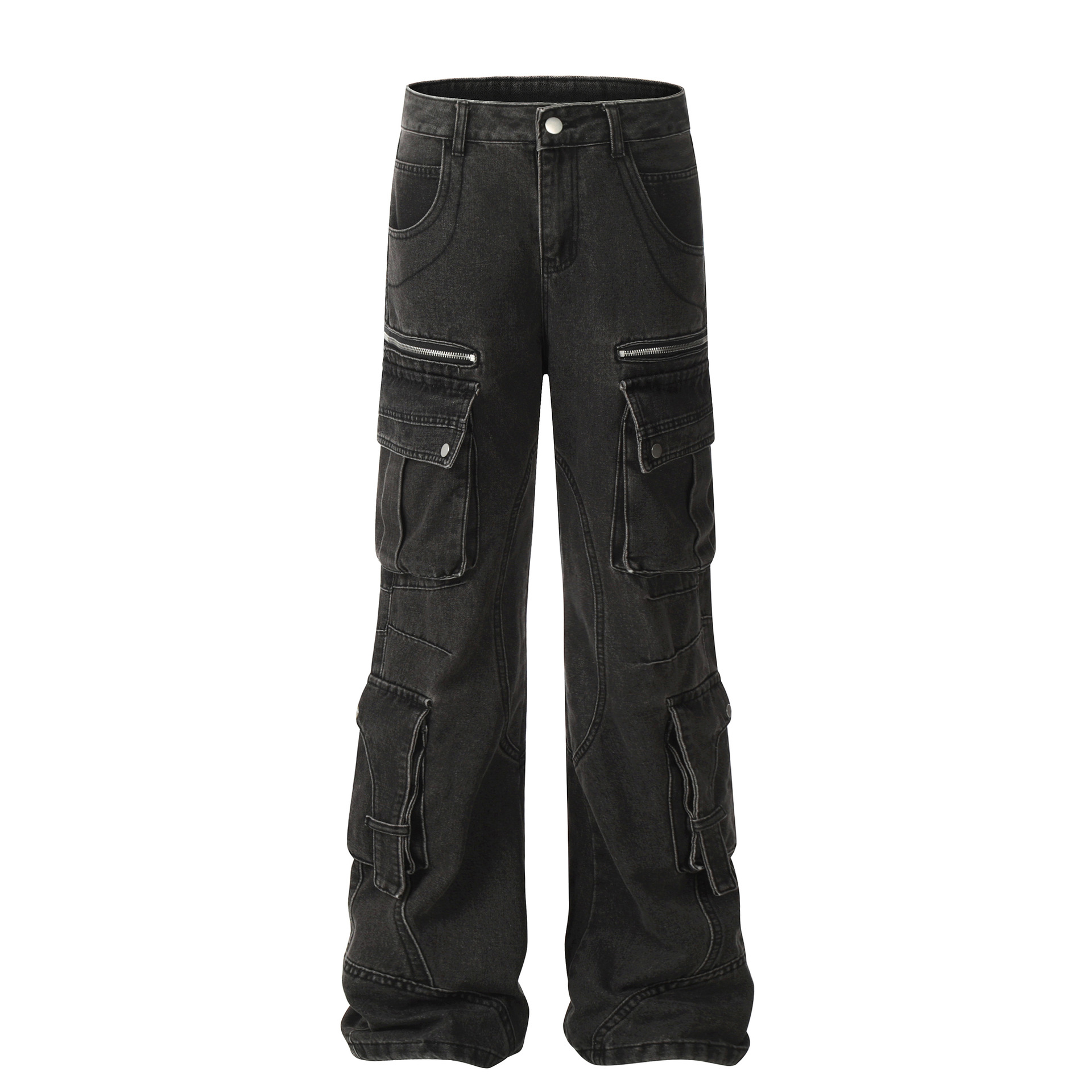 Vêtements pour hommes 2025 Nouveau jean de travail multi-poches délavé américain Style couple Pantalon légèrement évasé pour hommes et femmes