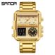 Montre carrée multifonction haut de gamme pour homme avec affichage lumineux, étanche à 30 m, double fuseau horaire et chronographe – Élégante pour le travail et les loisirs