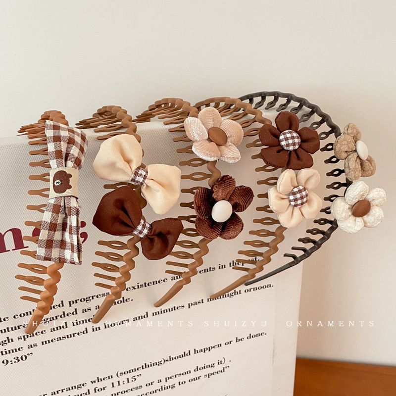 Girls' Hairband, Milk Coffee Color Flower Hair Clip, Little Girls' Hair Fixing Tool, Non-Damaging Hairband, Toothed Anti-Slip Headband