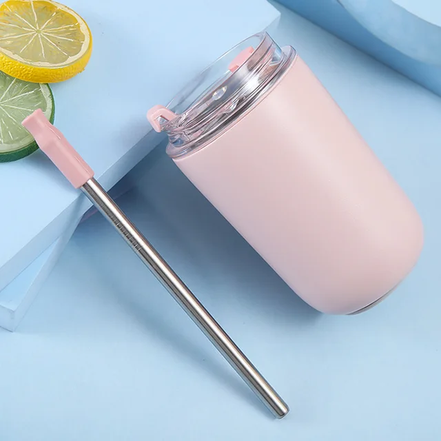 Mini Thermal Cup with Straw Cute Coffee Cup Travel Mugs Portable Vacuum Flask Stainless Steel Home Office Outdoor Drinkware Gift