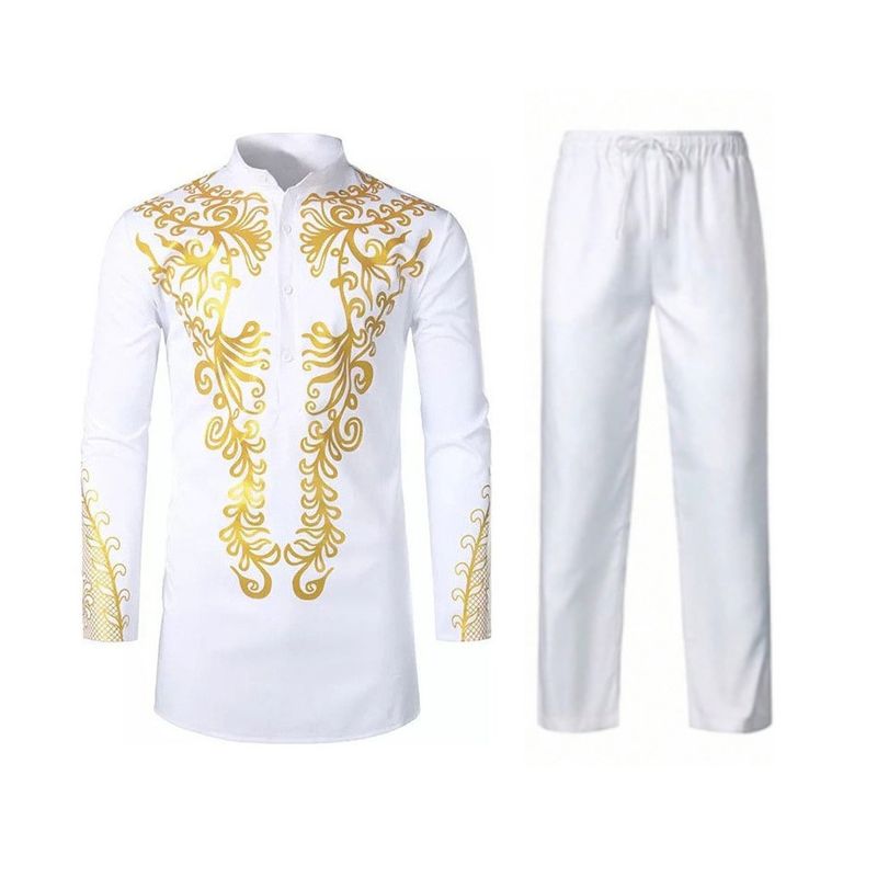 Costume pour homme de style musulman, chemise à manches longues avec estampage doré